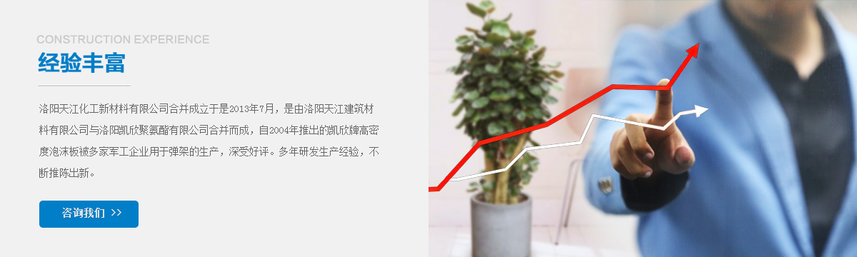 咨詢(xún)了解更多 >>洛陽(yáng)天江化工新材料有限公司成立于是2013年7月,是由洛陽(yáng)天江建筑材料有限公司與洛陽(yáng)凱欣聚氨酯有限公司合并而成,位于洛陽(yáng)市孟津縣白鶴鎮(zhèn)華陽(yáng)產(chǎn)業(yè)集聚區(qū)。本公司業(yè)生產(chǎn)系列聚氨酯組合料及系列聚氨酯制品。公司目前擁有年產(chǎn)2萬(wàn)噸組合聚醚生產(chǎn)裝置和年產(chǎn)10000m3泡沫制品生產(chǎn)能力。公司先后推出了城市集中供熱管道保溫組合聚醚、車(chē)庫(kù)門(mén)填充組合聚醚、冷庫(kù)及建筑節(jié)能?chē)娡拷M合聚酯、水發(fā)泡車(chē)用噴涂組合聚醚